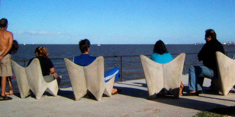 En la zona del Puerto de Olivos se encuentra el Laboratorio de Diseño y allí, en ese contexto, se pueden ver sillones a orillas del río utilizados por las familias. Mate y facturas en el living público.